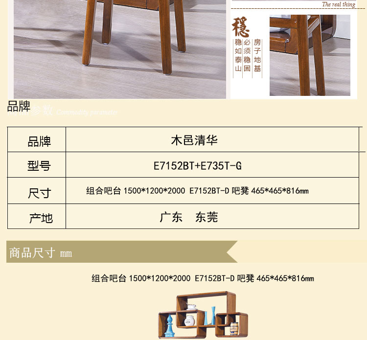 木邑清华 厂家直销新款组合吧台实木吧台吧凳组合 E7152BT+E735T-G