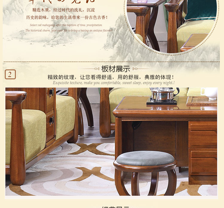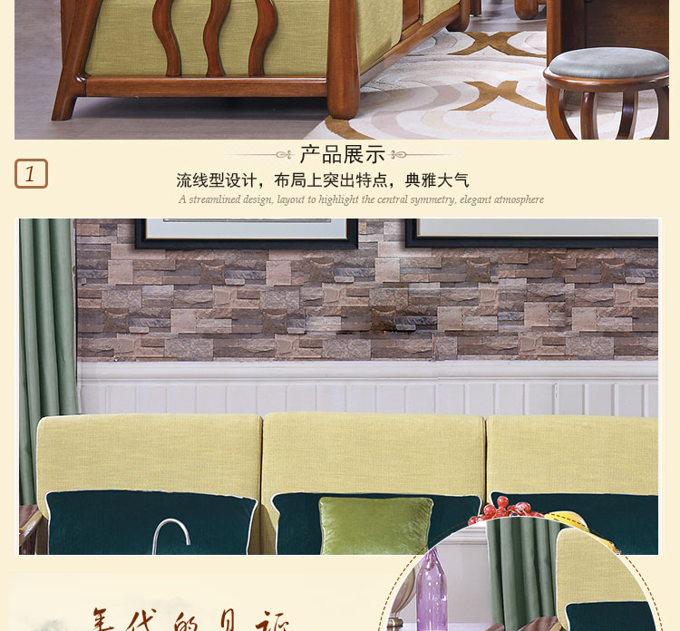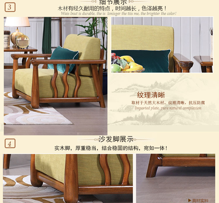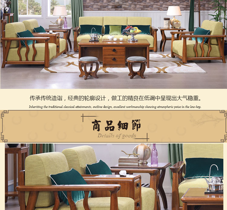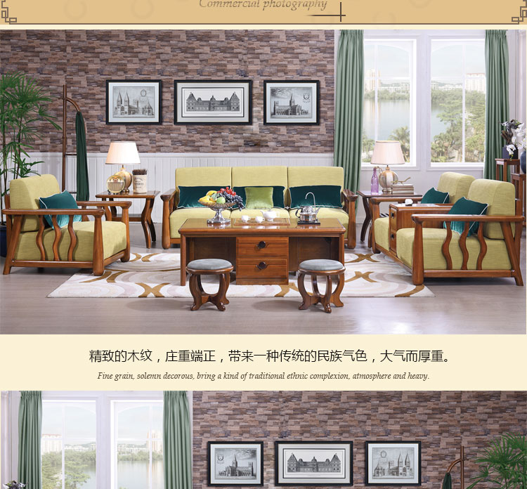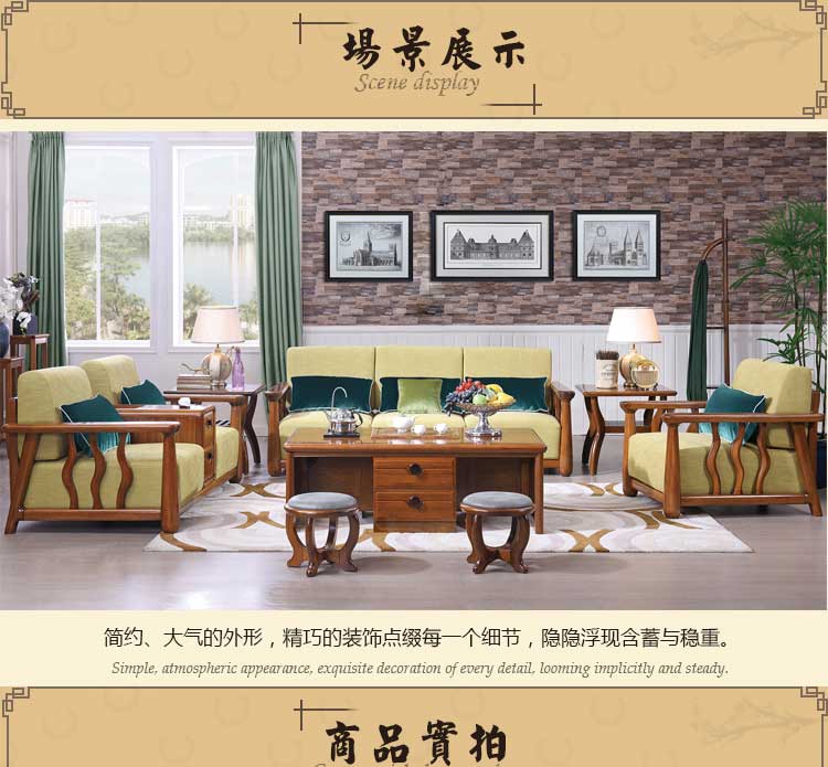 木邑清华 厂家直销新款沙发组合实木布艺结合沙发1.2.3人位沙发组合 E773SF