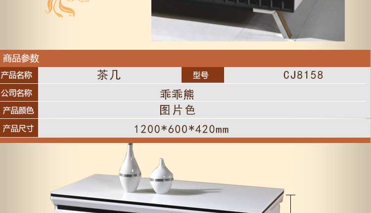 外围尺寸:茶几CJ8158:1200*600*420mm