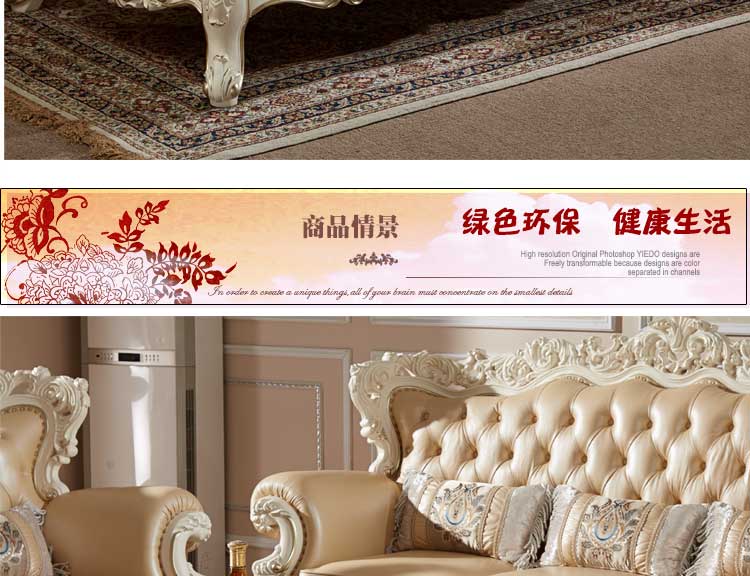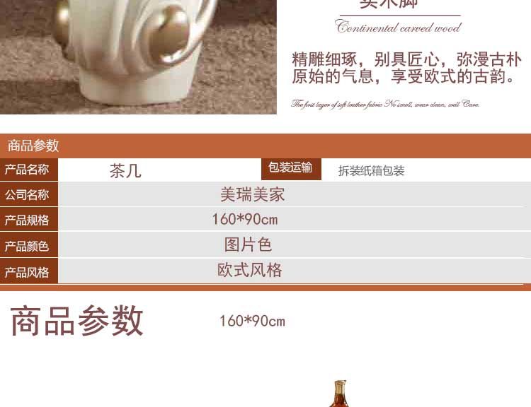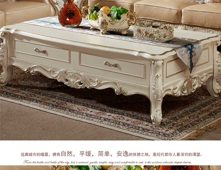 美瑞美家 欧式茶几欧式实木雕花茶几长方形客厅实木茶几6011
