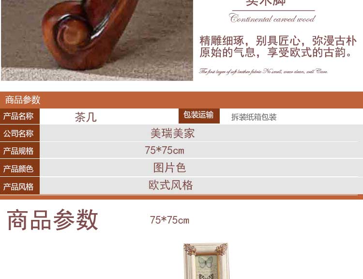 美瑞美家 欧式方几 欧式实木方几乡村仿古茶桌 方形客厅6033