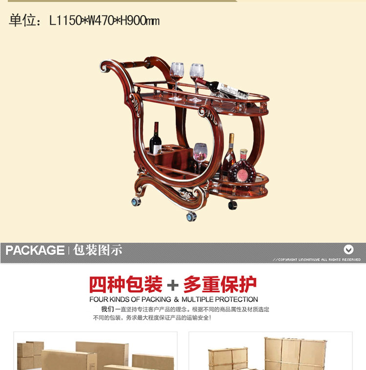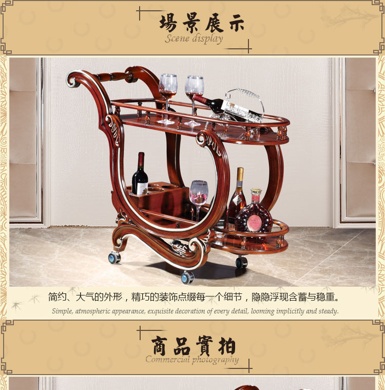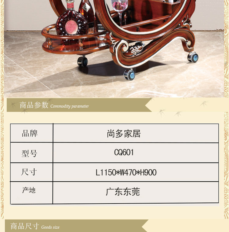 尚多家具 新款餐车 欧式深色+描香槟金餐车 高档餐厅餐车 CQ601