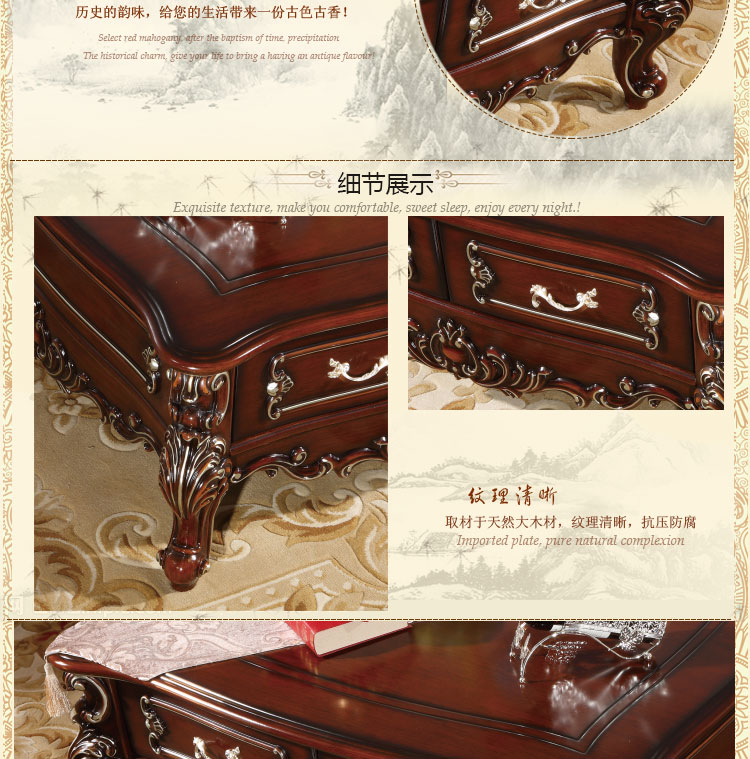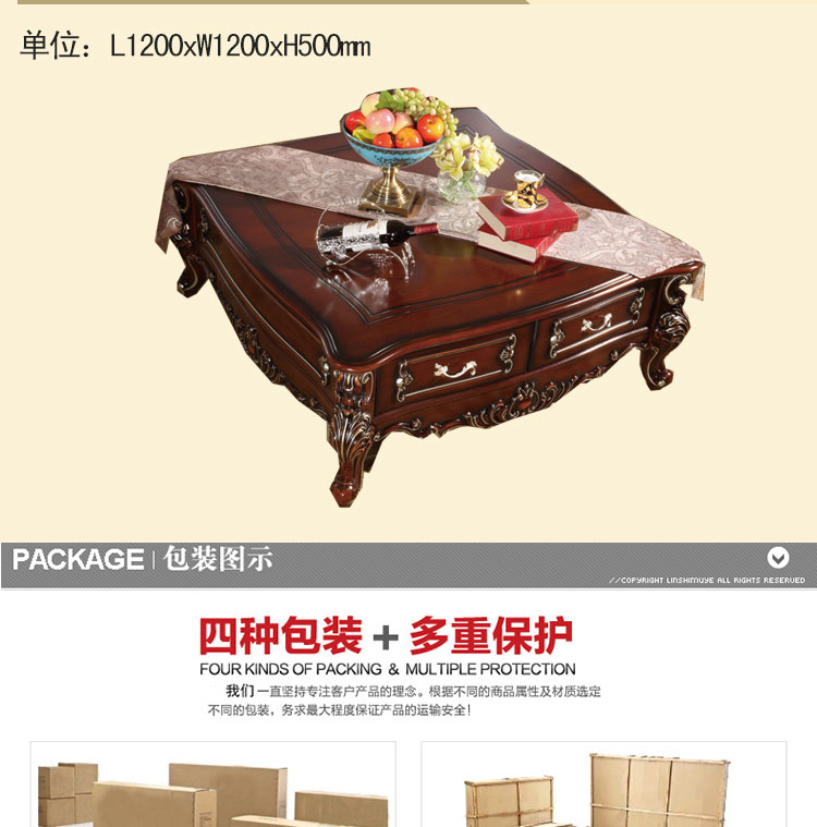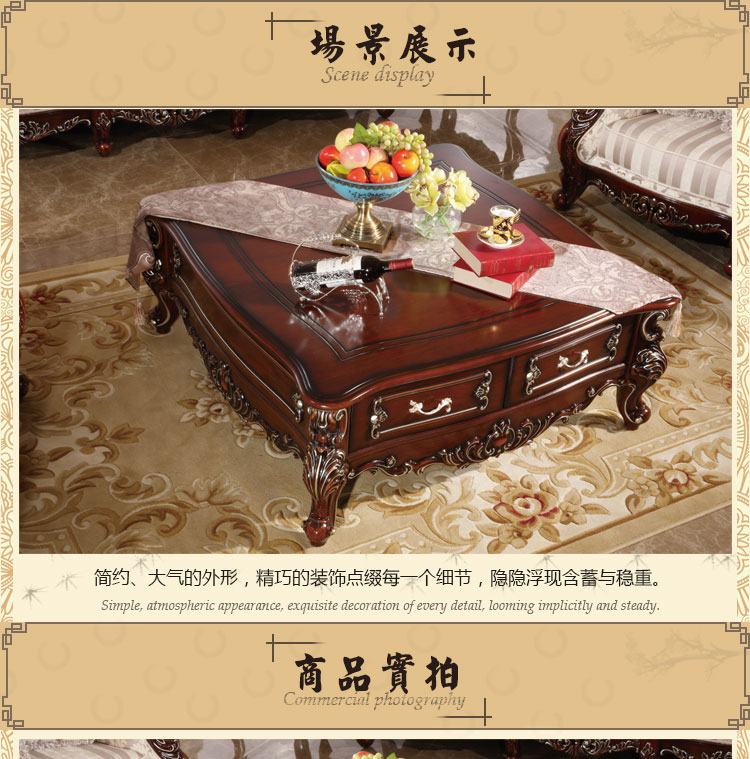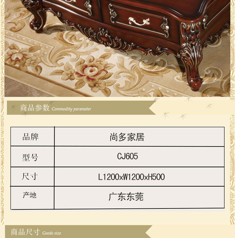 尚多家具 欧式两抽方形茶几 厂家直销高档深色+描香槟金两抽方形茶几CJ605