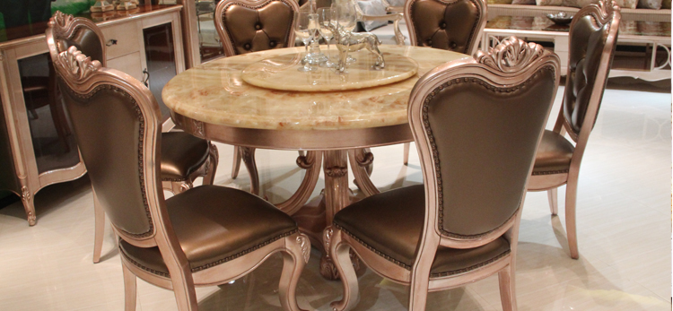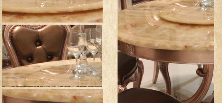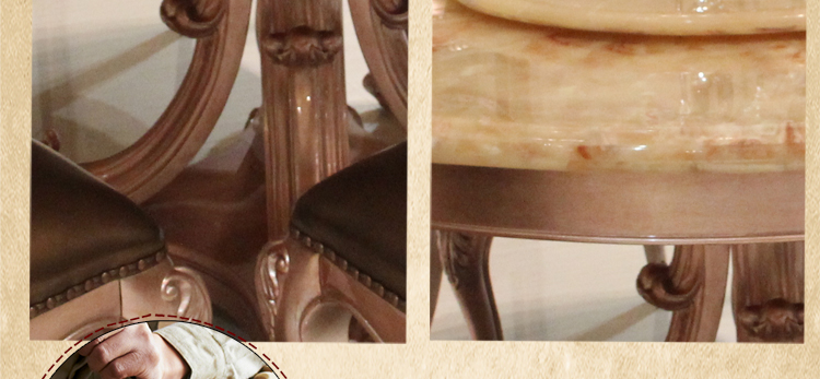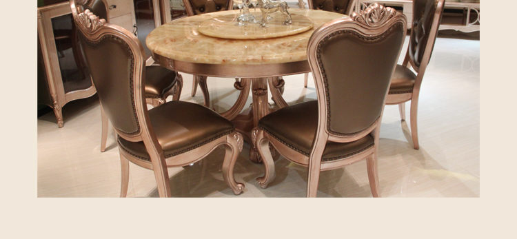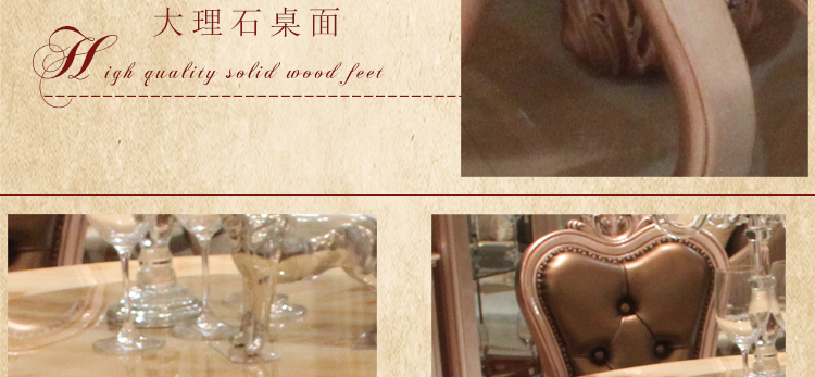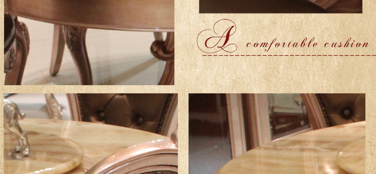 精选天然大理石桌面,进口优质实木, 精致立体雕花,环保喷漆,光泽质亮,简约的线条,完美展现浪漫优雅风格,低调奢华品质,环保油漆,做工优良,外观大气高雅。家庭团圆,邀约朋友,备受赞美,让您的餐厅熠熠生辉。让您与众不同。 有普通大理石面,天然大理石面,实木面可选择。欢迎新老朋友选购!