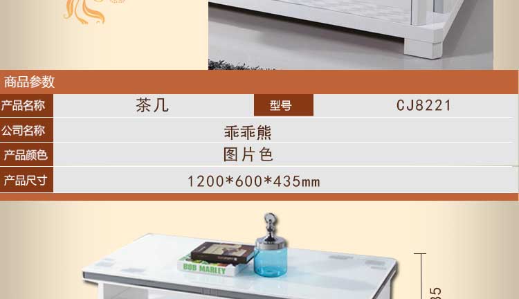 外围尺寸:茶几CJ8221:1200*600*435mm