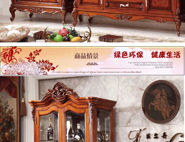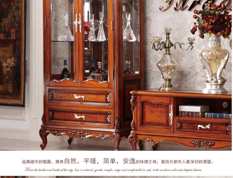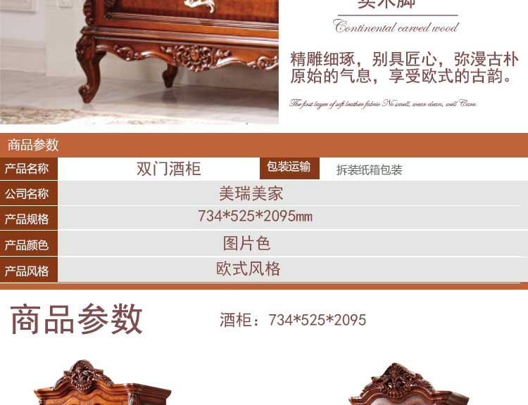 美瑞美家 欧式双开门酒柜实木矮酒柜欧式风格家具 A66双门酒柜