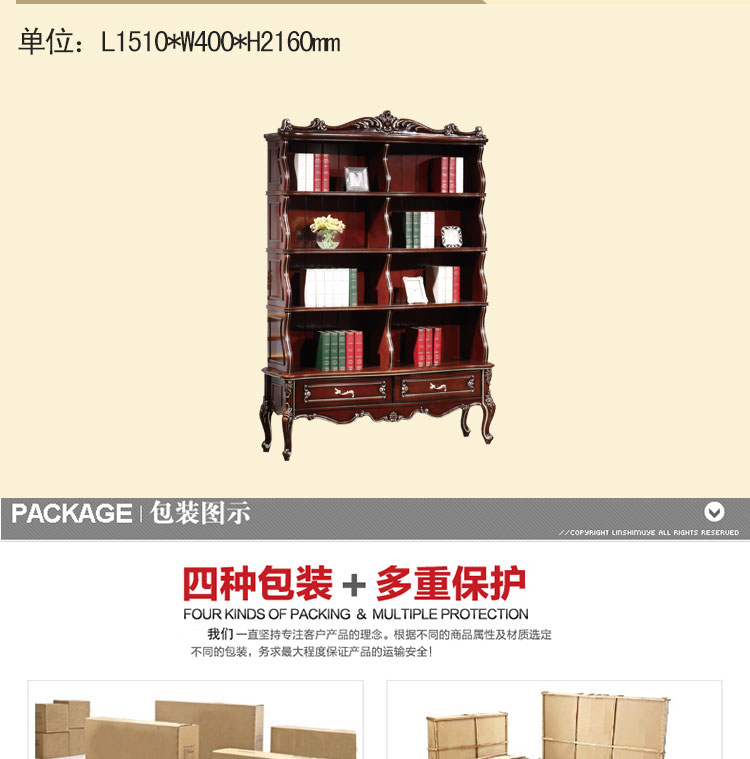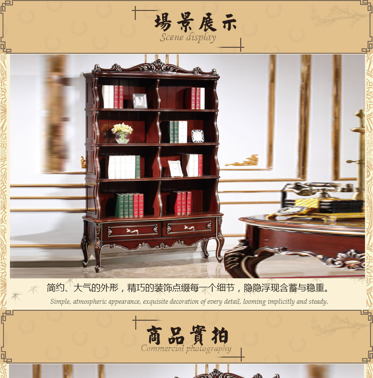 尚多家具 欧式书柜 深色+描香槟金书柜 书房空格书柜 SG601