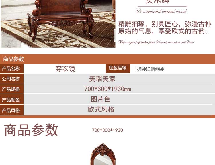 美瑞美家 欧式穿衣镜欧式实木全身镜落地镜旋转镜子试衣镜A66