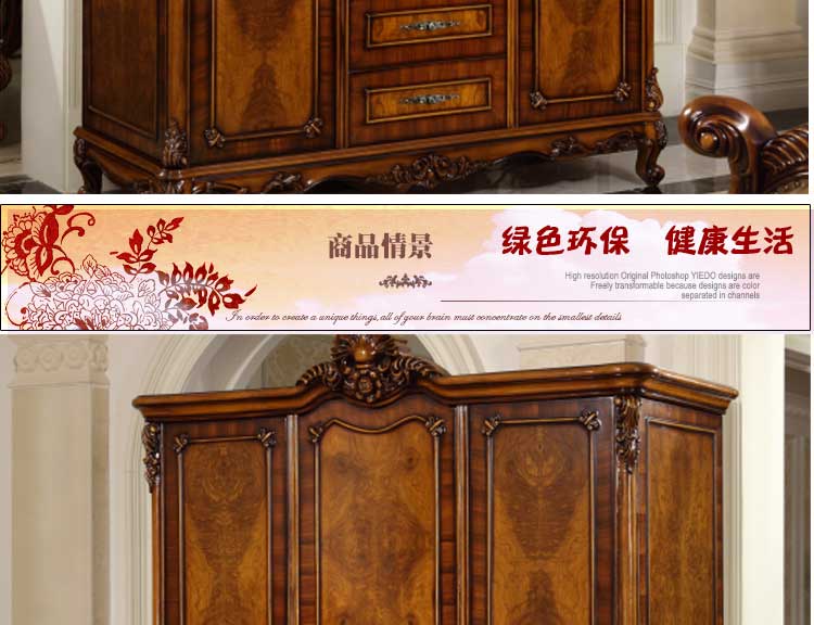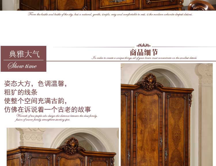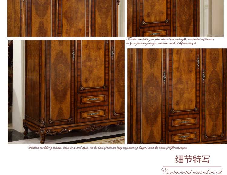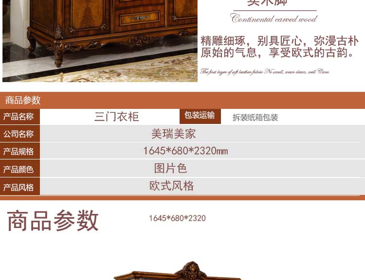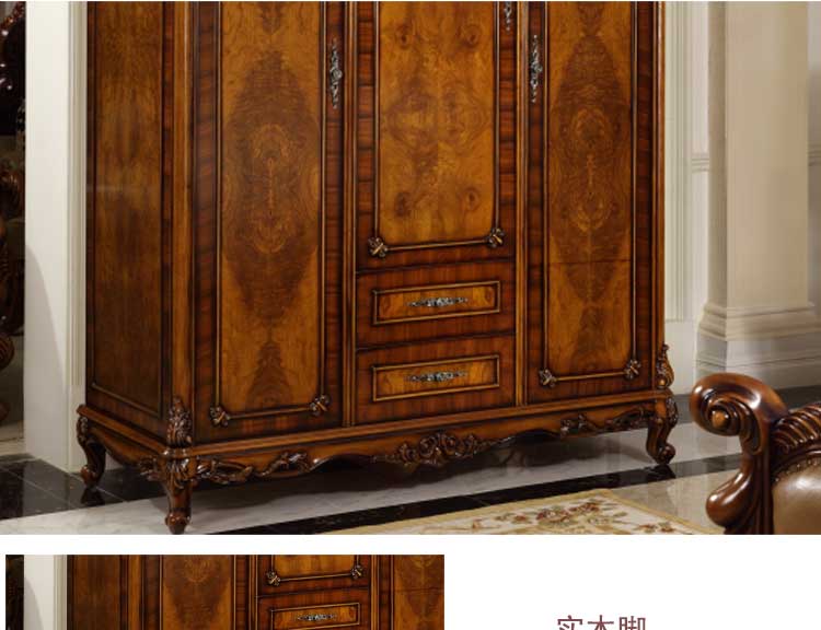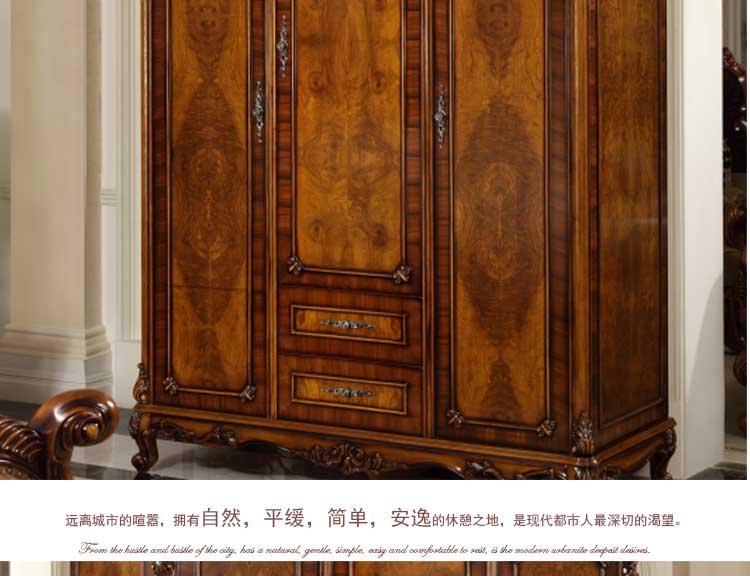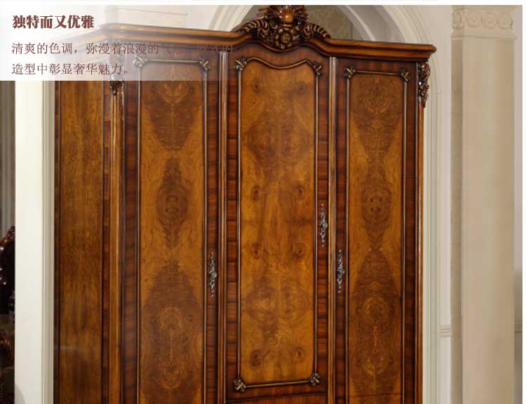 美瑞美家 欧式衣柜 法式实木衣柜 卧室奢华三门雕花大衣橱A68