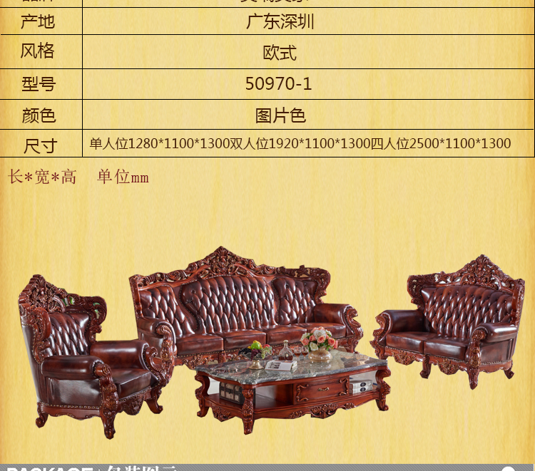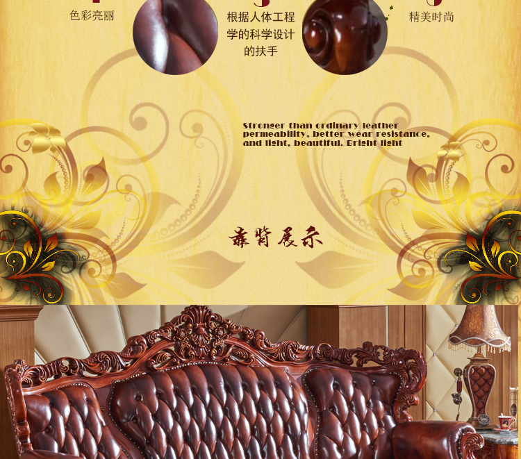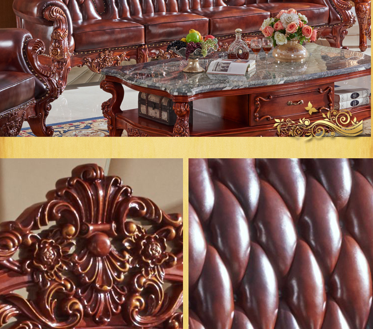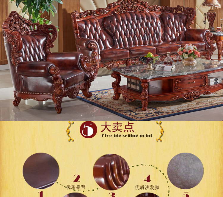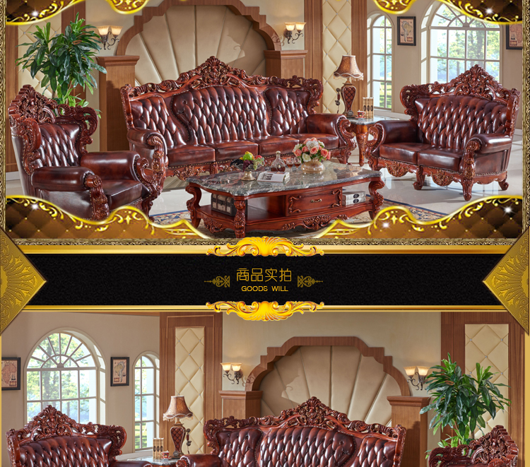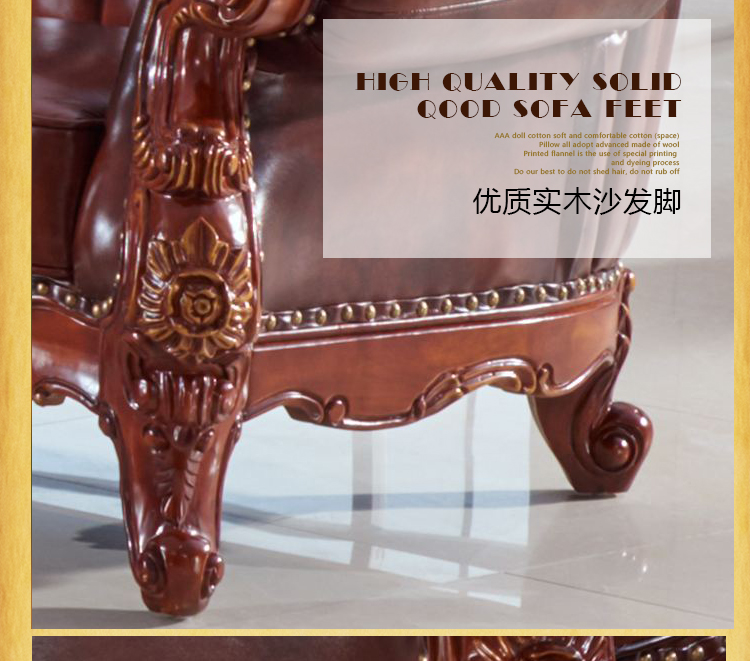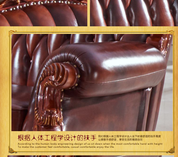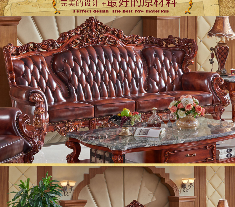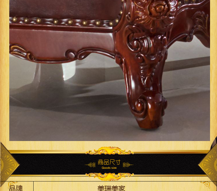 美瑞美家 欧式真皮沙发 实木雕花三人奢华豪华别墅客厅三人123组合5070-1