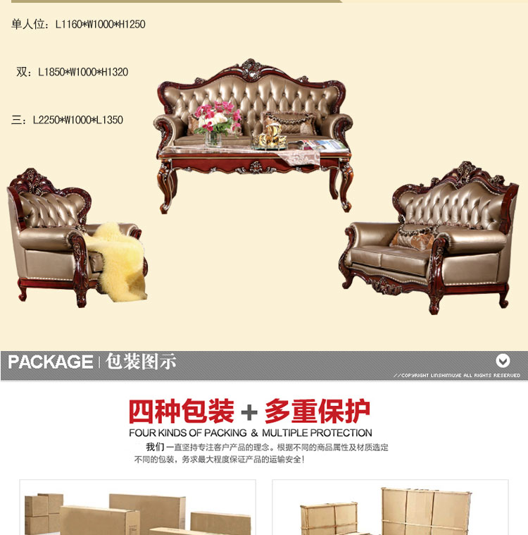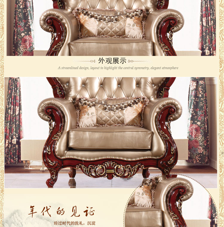 尚多家具 新款法式沙发 深色+描香槟金沙发123人位沙发 SF610