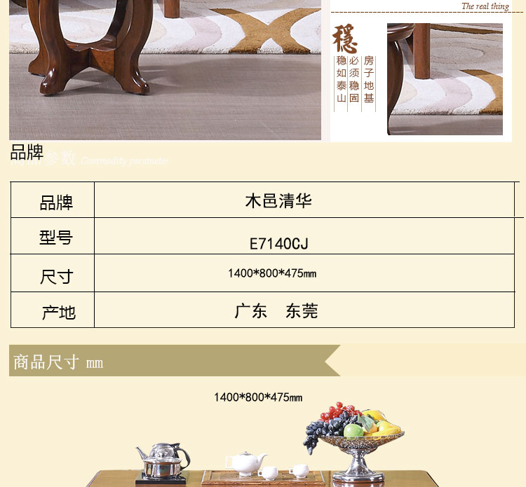 木邑清华 厂家直销客厅茶几实木茶几新款长茶几 E7140CJ