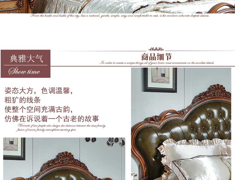 美瑞美家 欧式床实木床1.8米双人床 皮床法式床雕花家具床公主床婚床B06