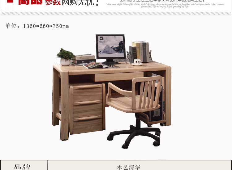 木邑清华 全实木书桌 家用台式电脑桌 中式写字台实木简约办公桌书房MXT236