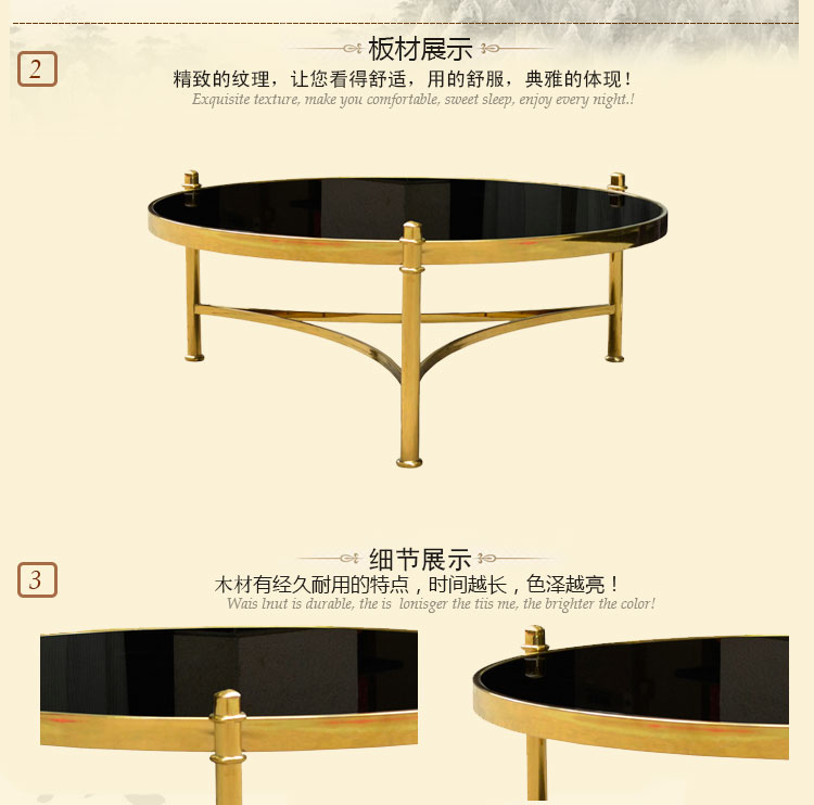 昂克雷 厂家直销美式钛金+黑玻小圆几 美式简约高档客厅小圆几LF2109