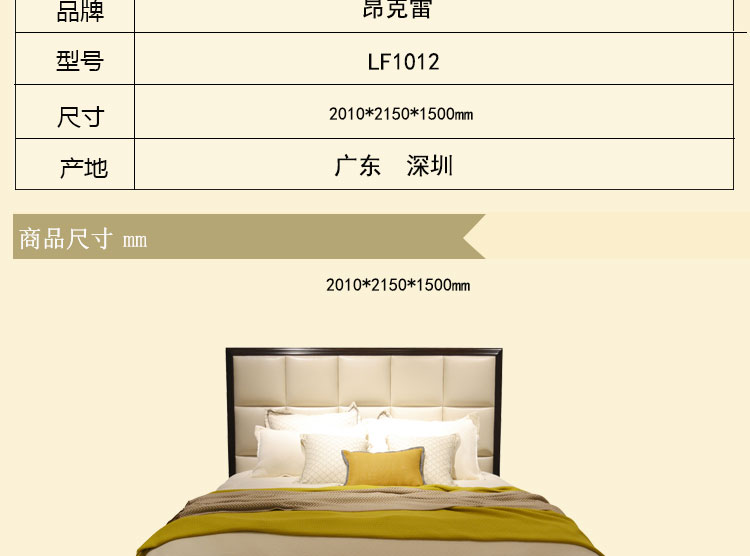 昂克雷 实木床1.8米现代美式软靠实木双人床婚庆实木床卧房LF1012