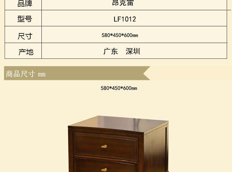 昂克雷 美式实木床头柜美式储物柜收纳柜卧室床边柜 LF1102