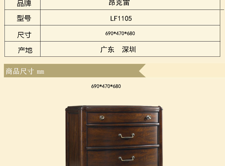 昂克雷 美式实木床头柜美式储物柜收纳柜卧室床边柜LF1105