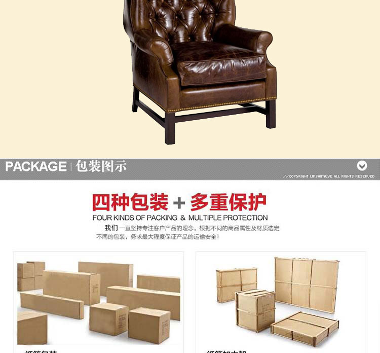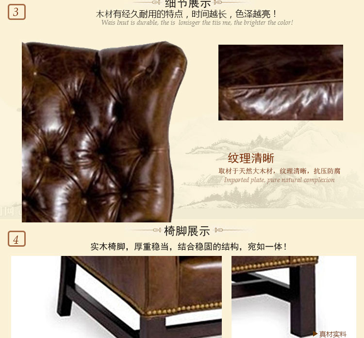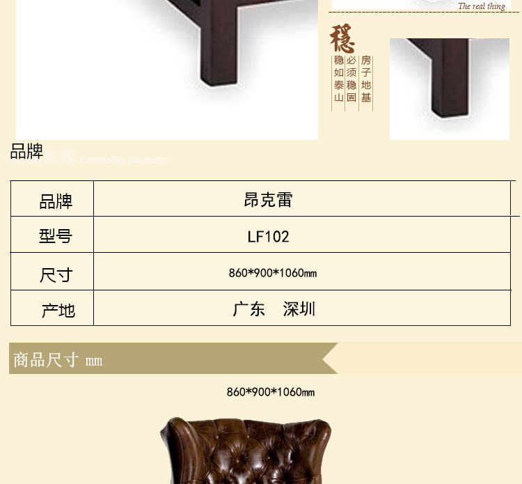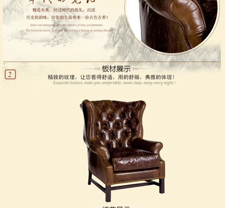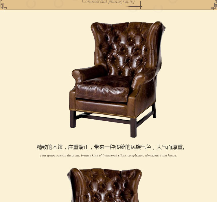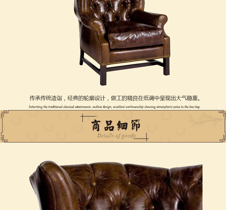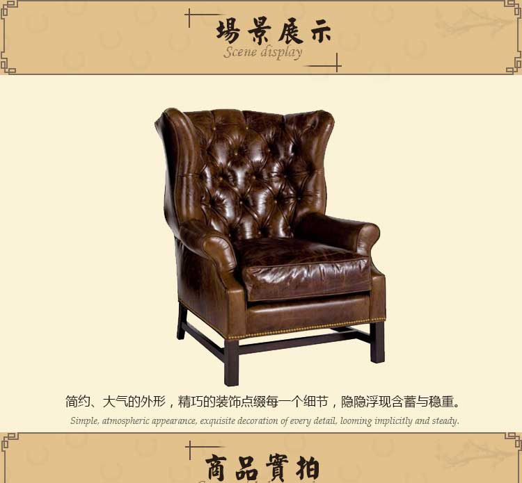 昂克雷 新美式皮椅休闲单人位椅子有扶手单椅 LF102