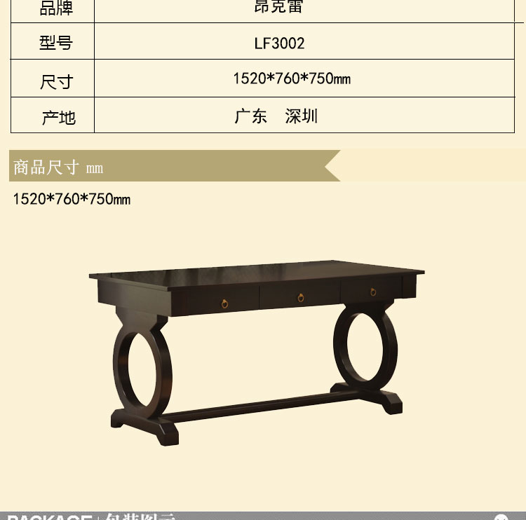 昂克雷 新款书桌美式书桌书橱书桌酒柜储物柜桃花心书桌 LF3002