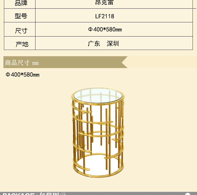 昂克雷 美式小茶拉丝铜+清玻茶几简约咖啡桌边几小桌子复古茶几LF2118