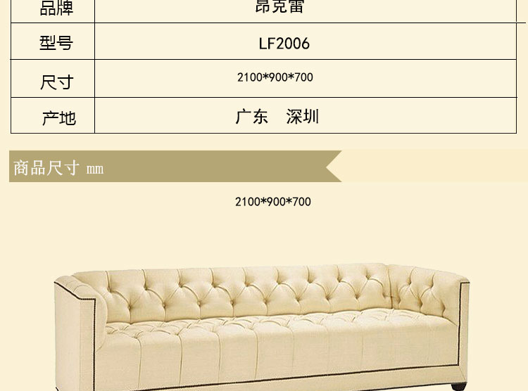 昂克雷 美式布艺沙发小户型沙发三人位布艺沙发 LF2006