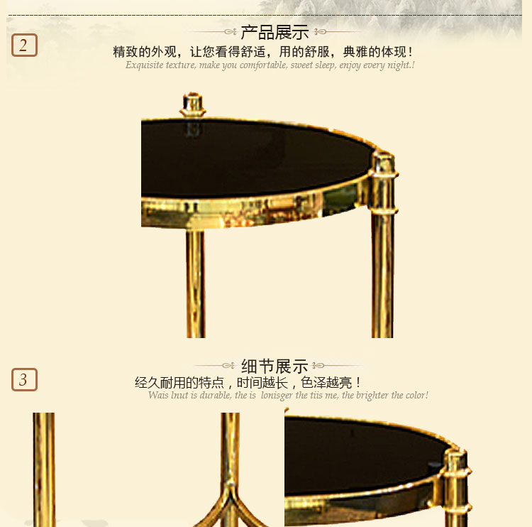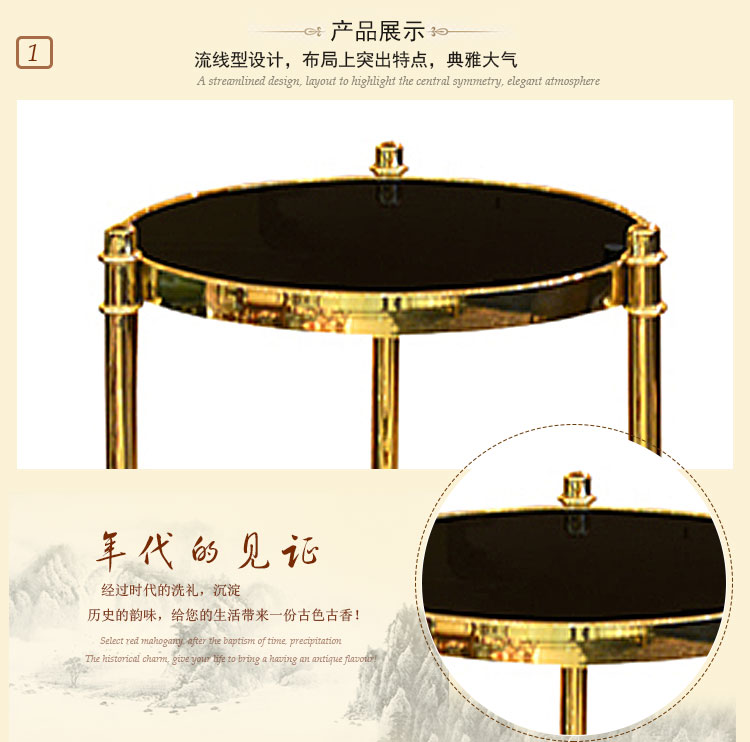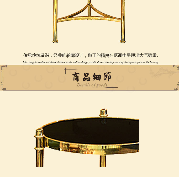 昂克雷 美式小茶几钛金+黑玻茶几简约咖啡桌边几小桌子复古茶几LF2109