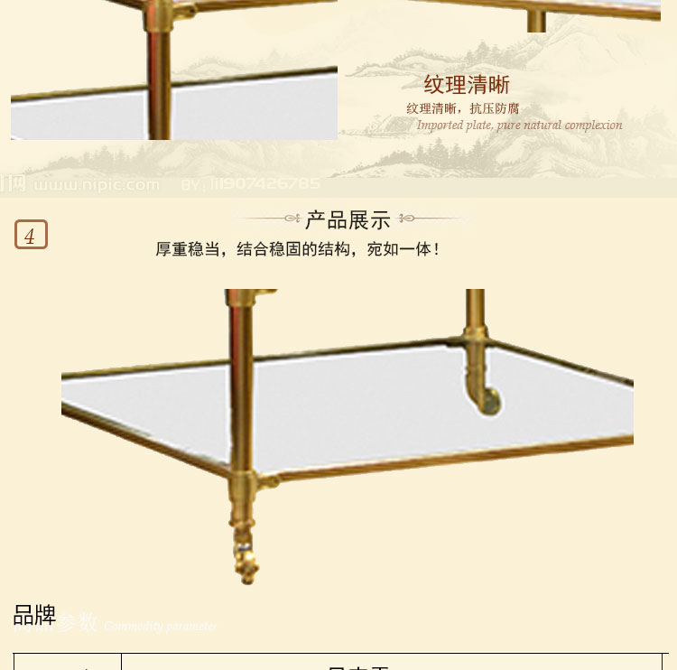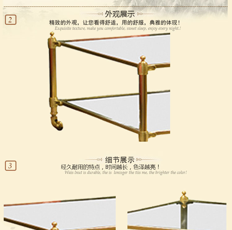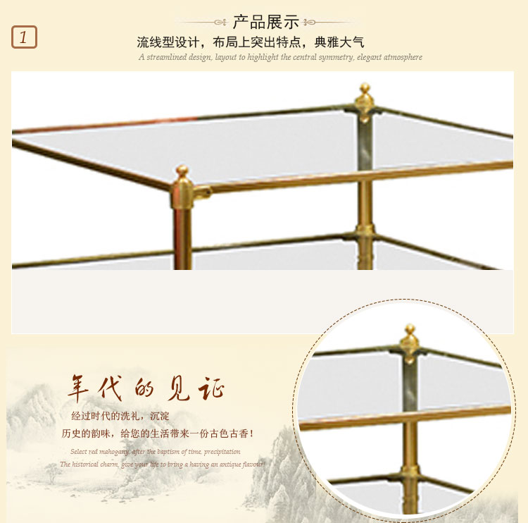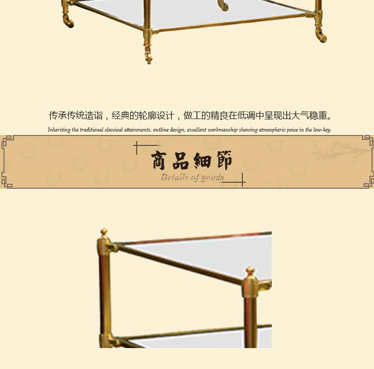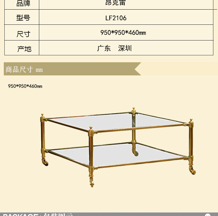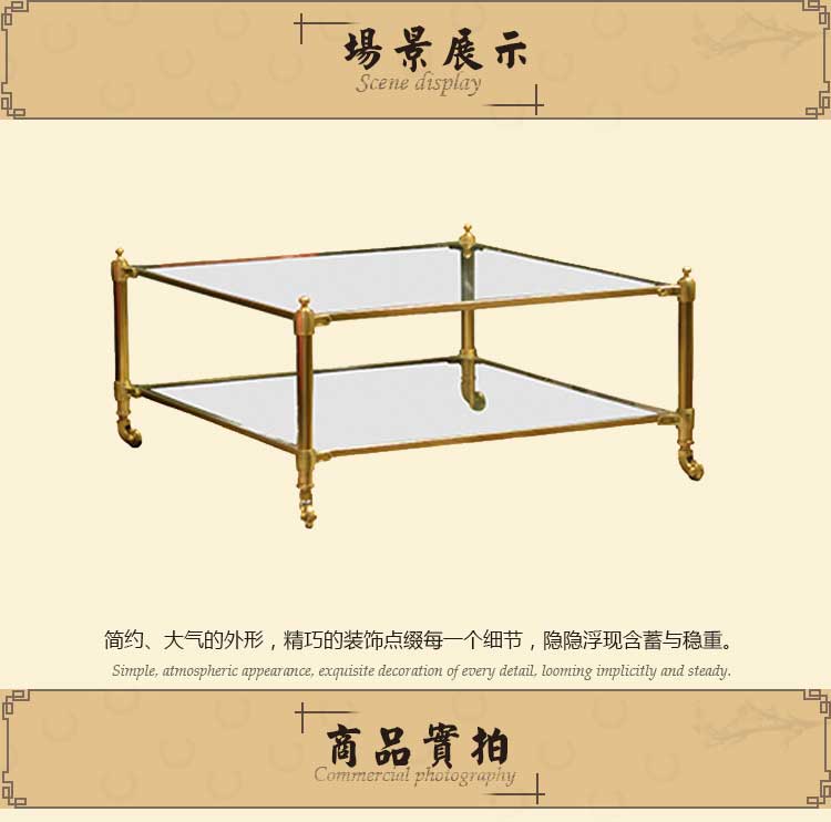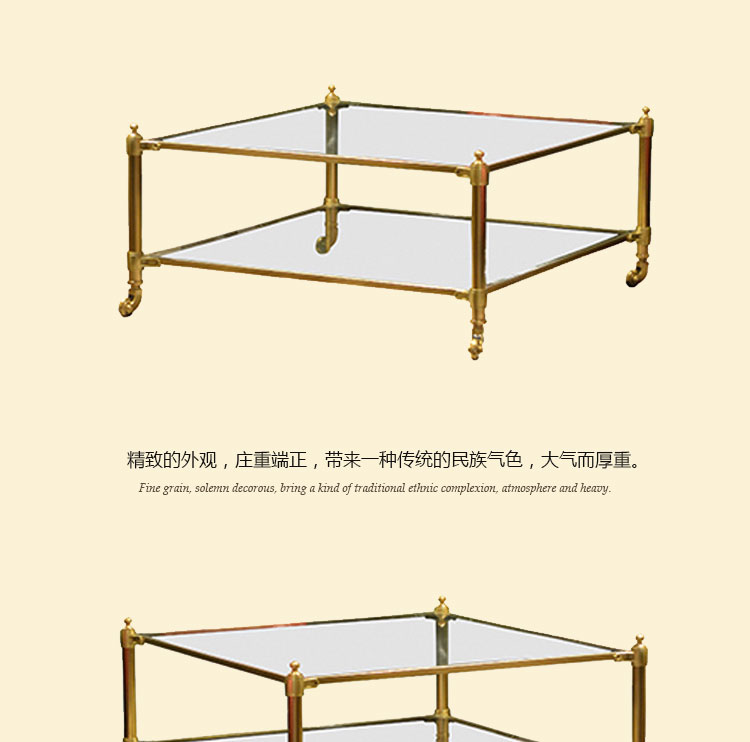 昂克雷 美式茶几铜+清玻茶几简约咖啡桌边几小桌子复古茶几 LF2106