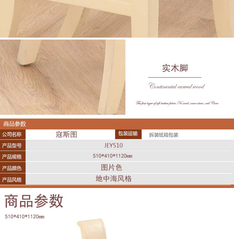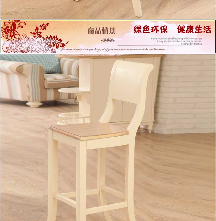 蔻斯图 厂家直销吧椅乡村实木椅地中海简约背椅复古咖啡椅JEY510