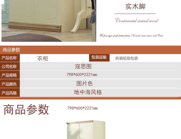 蔻斯图 地中海家具现代简约两门收纳储物衣柜实木衣橱柜JE03T4-2