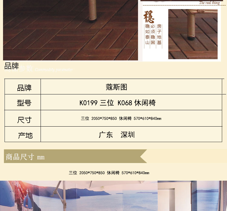 外围尺寸 三位 2050*750*850 休闲椅 570*610*840mm