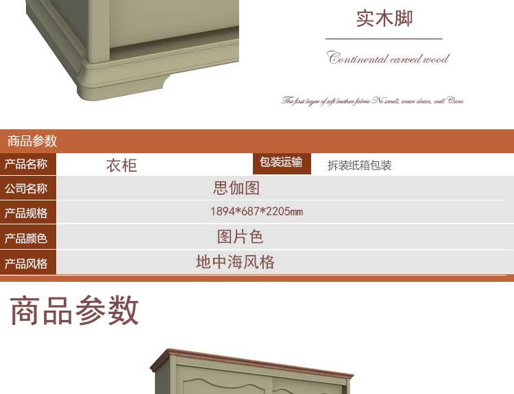 思伽图 地中海木质大衣柜趟门衣橱卧室整体衣帽柜家具ME01T10