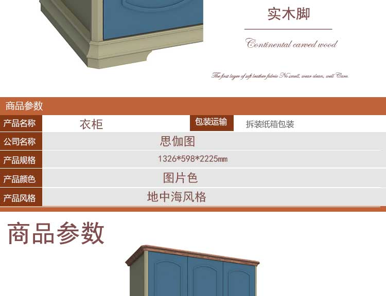 思伽图 地中海家具实木衣柜 三门组合家用衣橱 卧室大衣柜ME03T3-T
