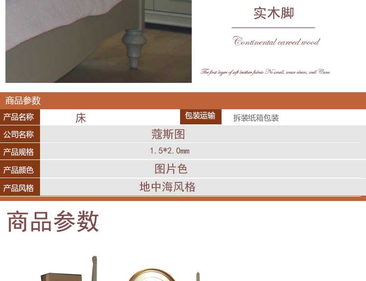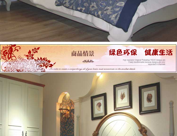 思伽图 地中海实木床卧室家具田园公主1.8米1.5m双人地中海床ME07T7G