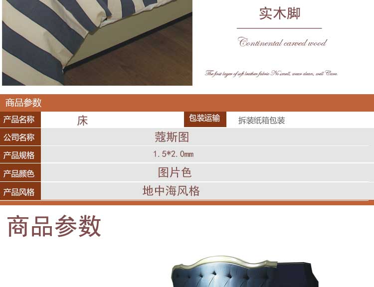 思伽图 地中海床1.5实木主卧床美式乡村1.8米双人床风格家具ME01T7G