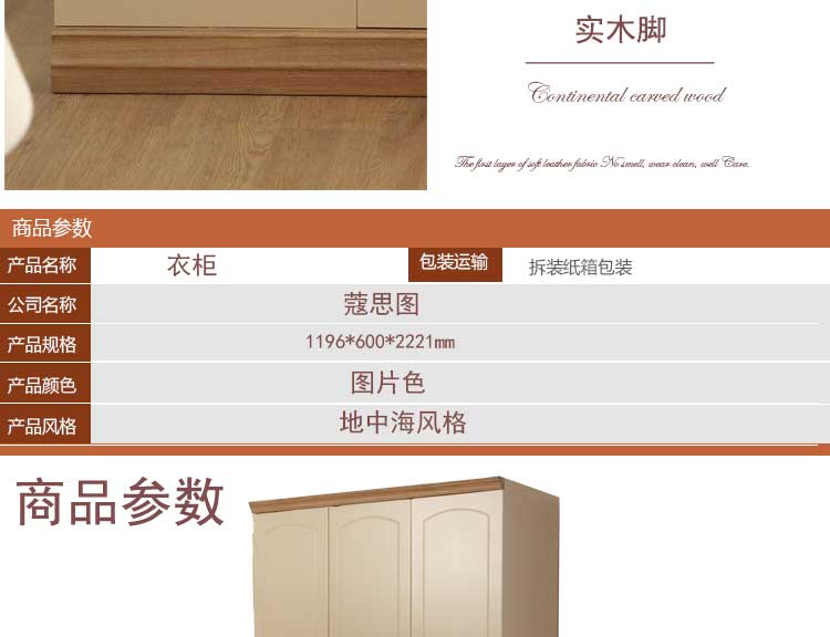 蔻斯图 地中海全实木衣柜田园小户型原木色三门衣橱柜储物柜组合衣柜开门JE03T3