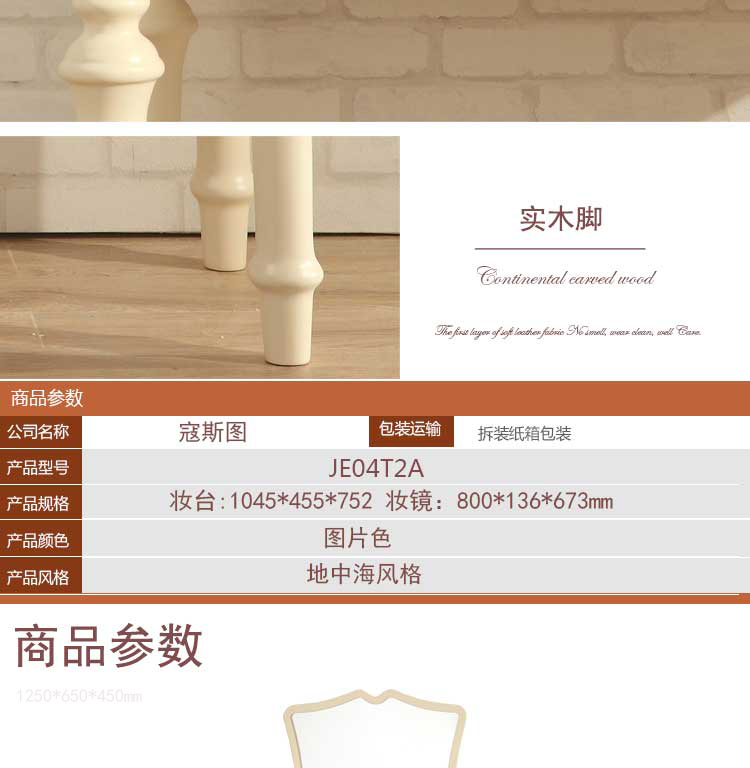 蔻斯图 高档卧室妆台妆镜 地中海妆台 实木简约妆台妆镜 JE04T2AB