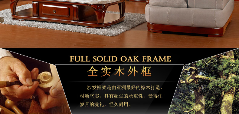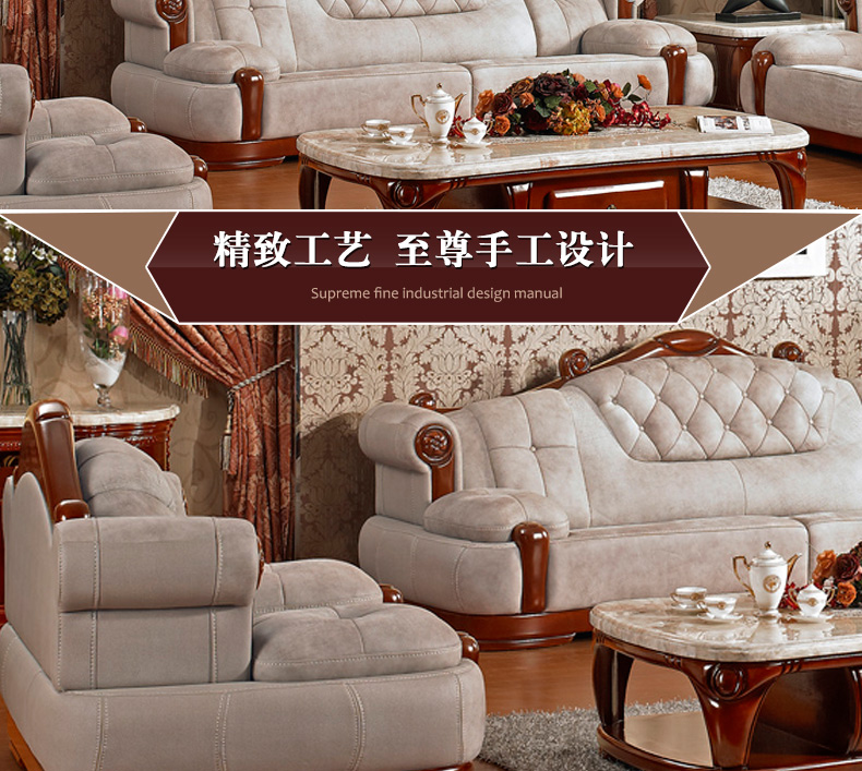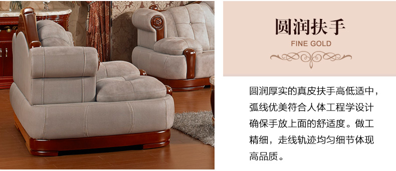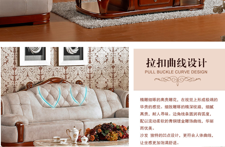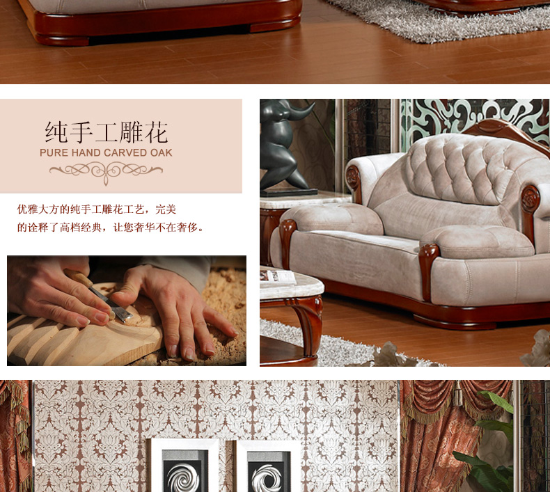 富家美佳欧式真皮沙发124组合高档实木雕花客厅家具大小户型皮艺沙发B207