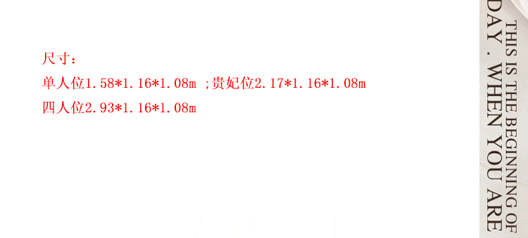 尺寸:单位沙发:1.58*1.16*1.08;贵妃位:2.17*1.16*1.08;四位沙发:2.93*1.16*1.08