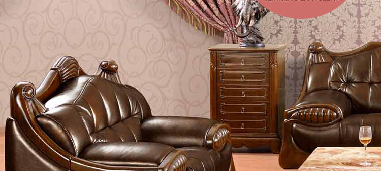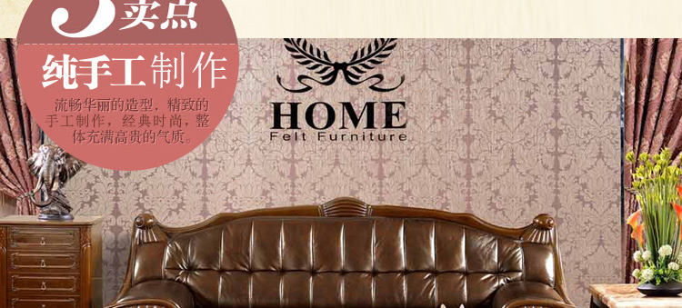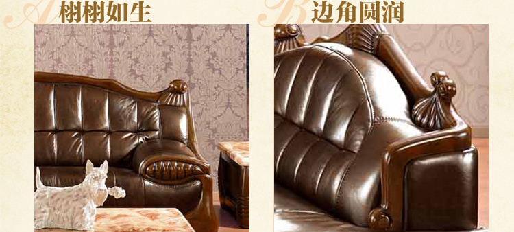 富家美佳欧式真皮沙发实木雕花大户型客厅沙发组合美式家具B275