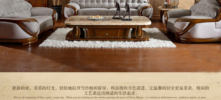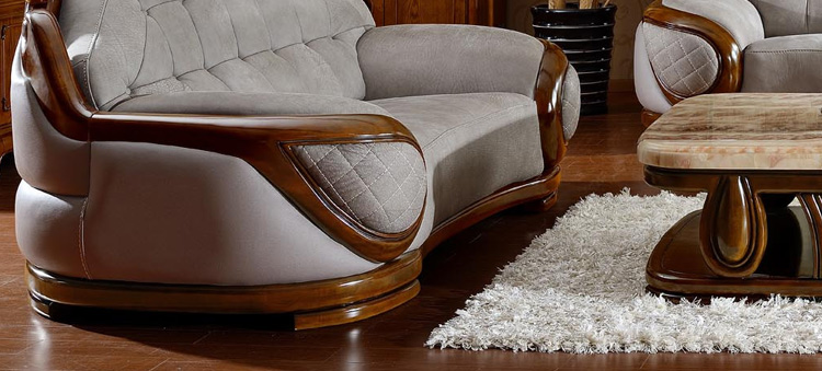 沙发是实木的,做工精致,款式大气,时尚大气。好显档次的。到货后,检查了质量,无有损坏,感觉很超值。摆在客厅里,奢华显品位。