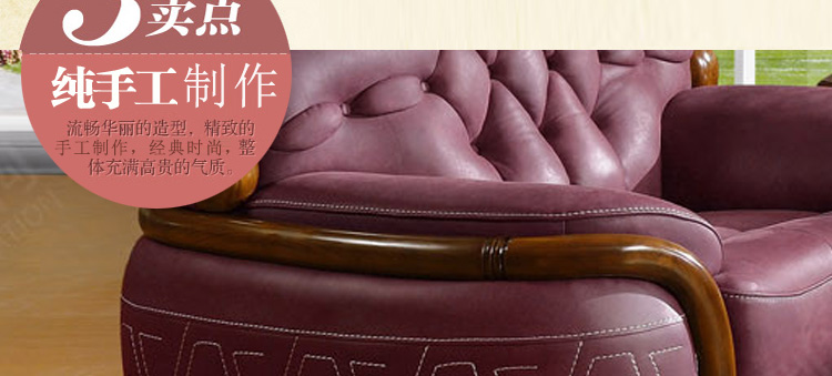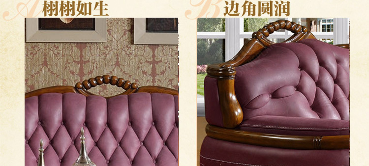 富家美佳欧式真皮沙发中厚皮客厅组合头层牛皮贵妃实木皮艺沙发B320
