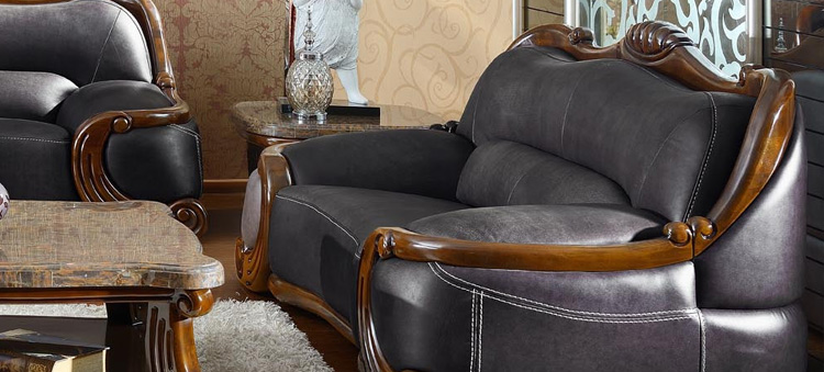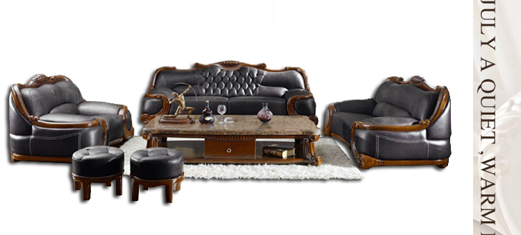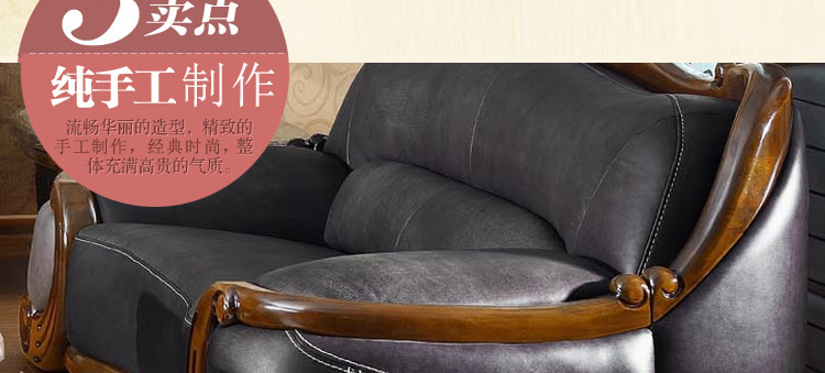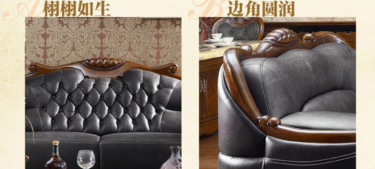 富家美佳欧式沙发组合实木雕花客厅高档奢华大户型住宅家具皮艺沙发B285-A