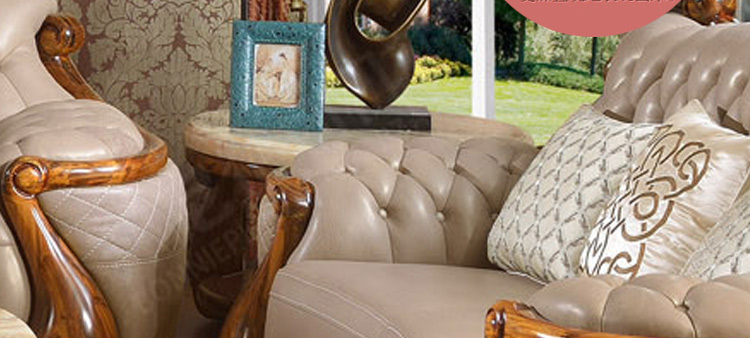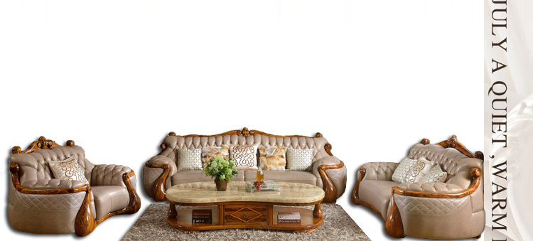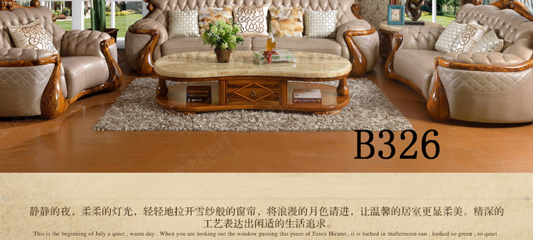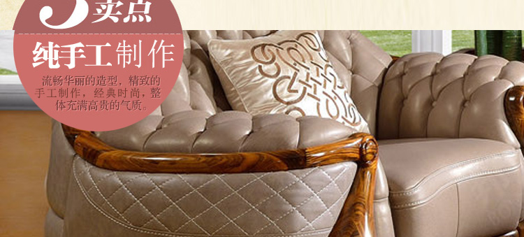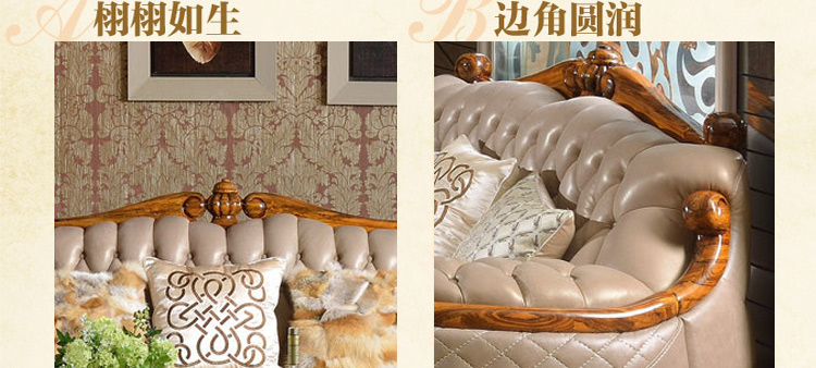 富家美佳欧式真皮沙发组合古典客厅实木雕花家具真皮沙发B326
