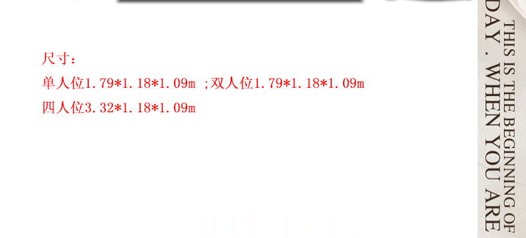 尺寸:单位沙发:1.79*1.18*1.09;二位沙发:2.31*1.18*1.09;四位沙发:3.32*1.18*1.09