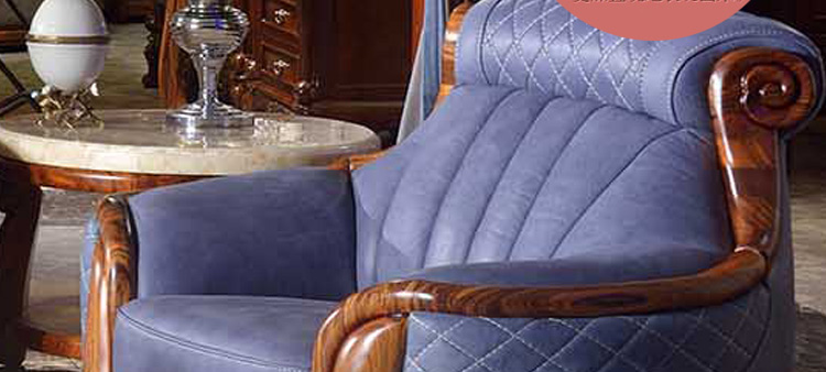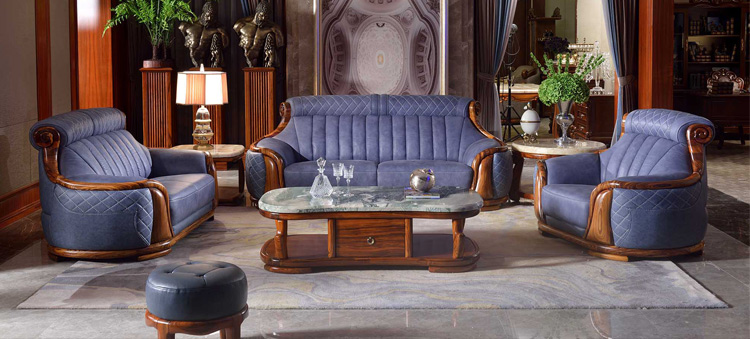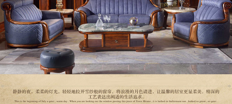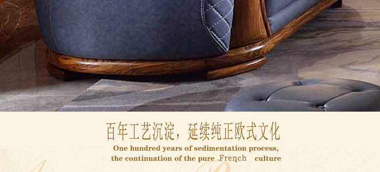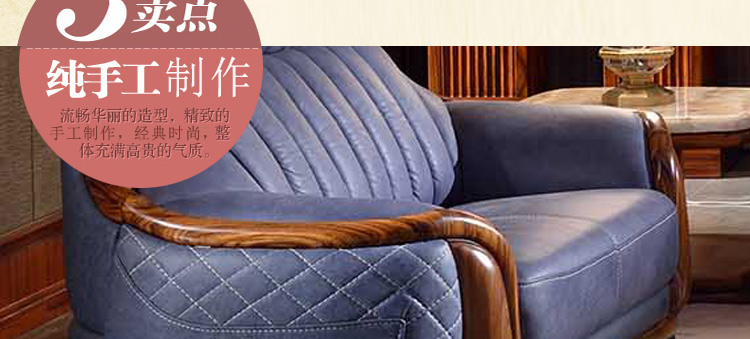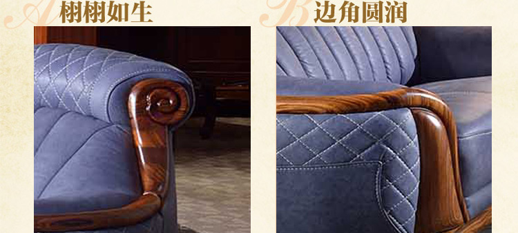 富家美佳乌金木欧式沙发组合双面雕花实木沙发大户型家具真皮沙发B328