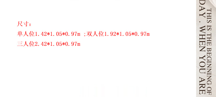 尺寸:单位沙发:1.42*1.05*0.97;二位沙发:1.92*1.05*0.97;三位沙发:2.42*1.05*0.97