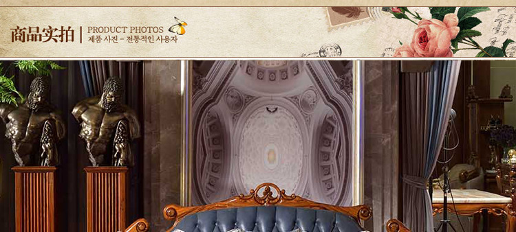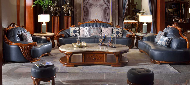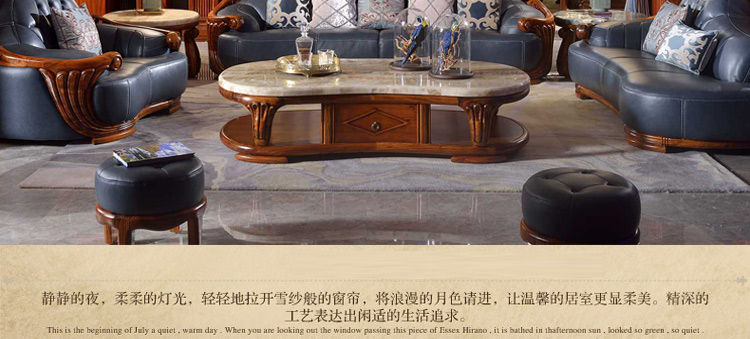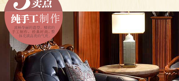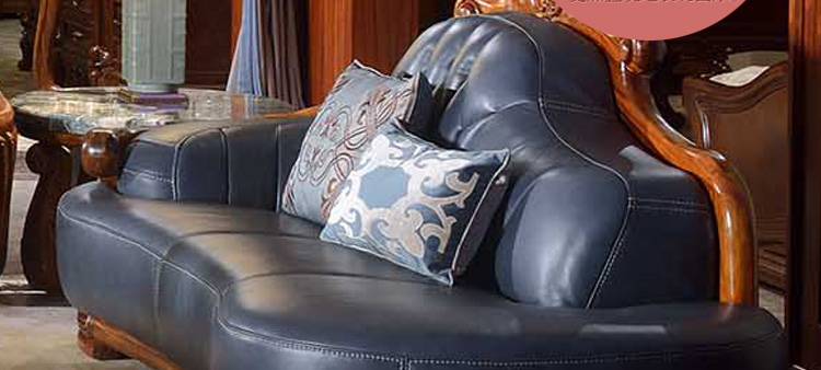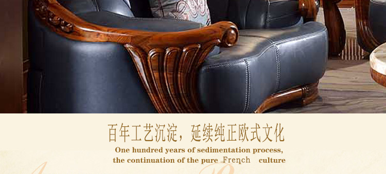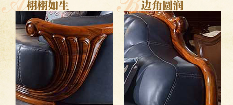 富家美佳乌金木欧式皮艺沙发组合整装实木客厅真皮高档三人家具B333