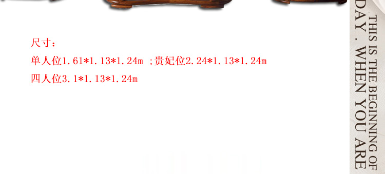 尺寸:单位沙发:1.61*1.13*1.24;贵妃位:2.24*1.13*1.24;四位沙发:3.1*1.13*1.24