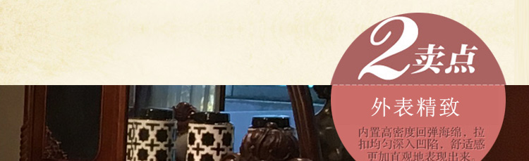 整个沙发的背部选材全部都进行打磨过,即使整套沙发不靠墙摆放一样不会影响效果。 同时半掩半露的设计,像颐和园的走廊一样庄重而富有文化气息。